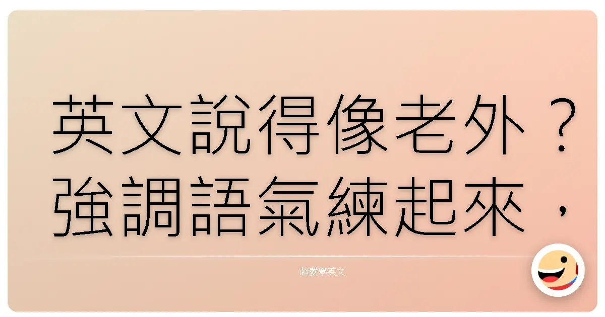 你有沒有聽過外國人講中文,即使文法正確,但聽起來就是怪怪的?這通常是因為他們缺少了中文裡強調語氣的運用,像是「真的假的?」、「超好笑的!」等等。英文也是一樣,如果只會用基本的句子結構,聽起來就會很平板,缺乏感情。